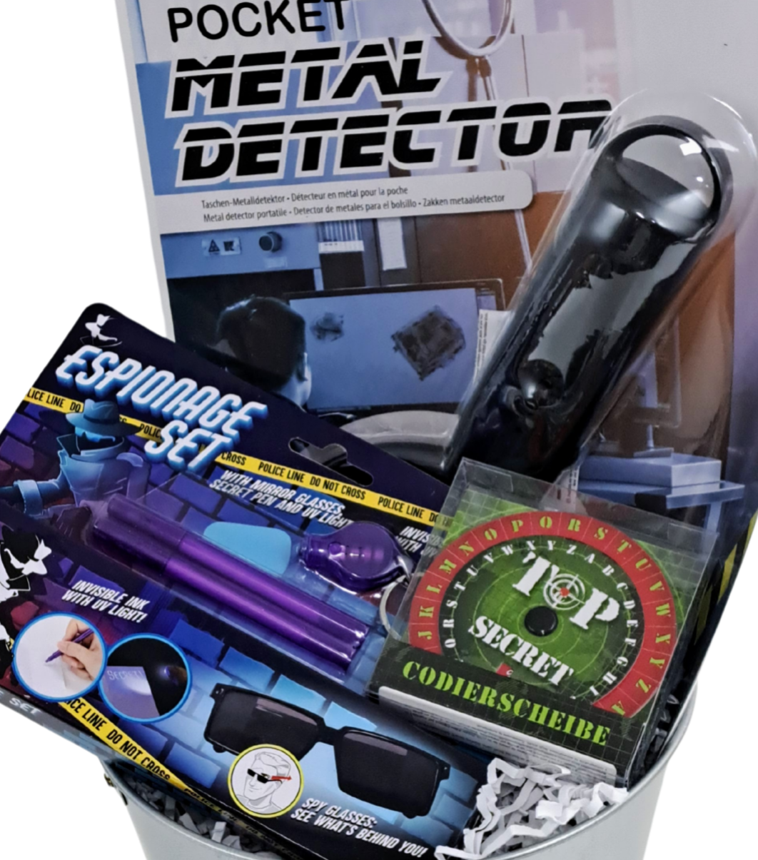 De Top Secret Bucket is een kant-en-klaar cadeau 🎁 vol spanning, avontuur en geheimzinnigheid — een origineel cadeau voor jongens én meisjes die houden van codes, mysteries en spionage! 🕶️✨