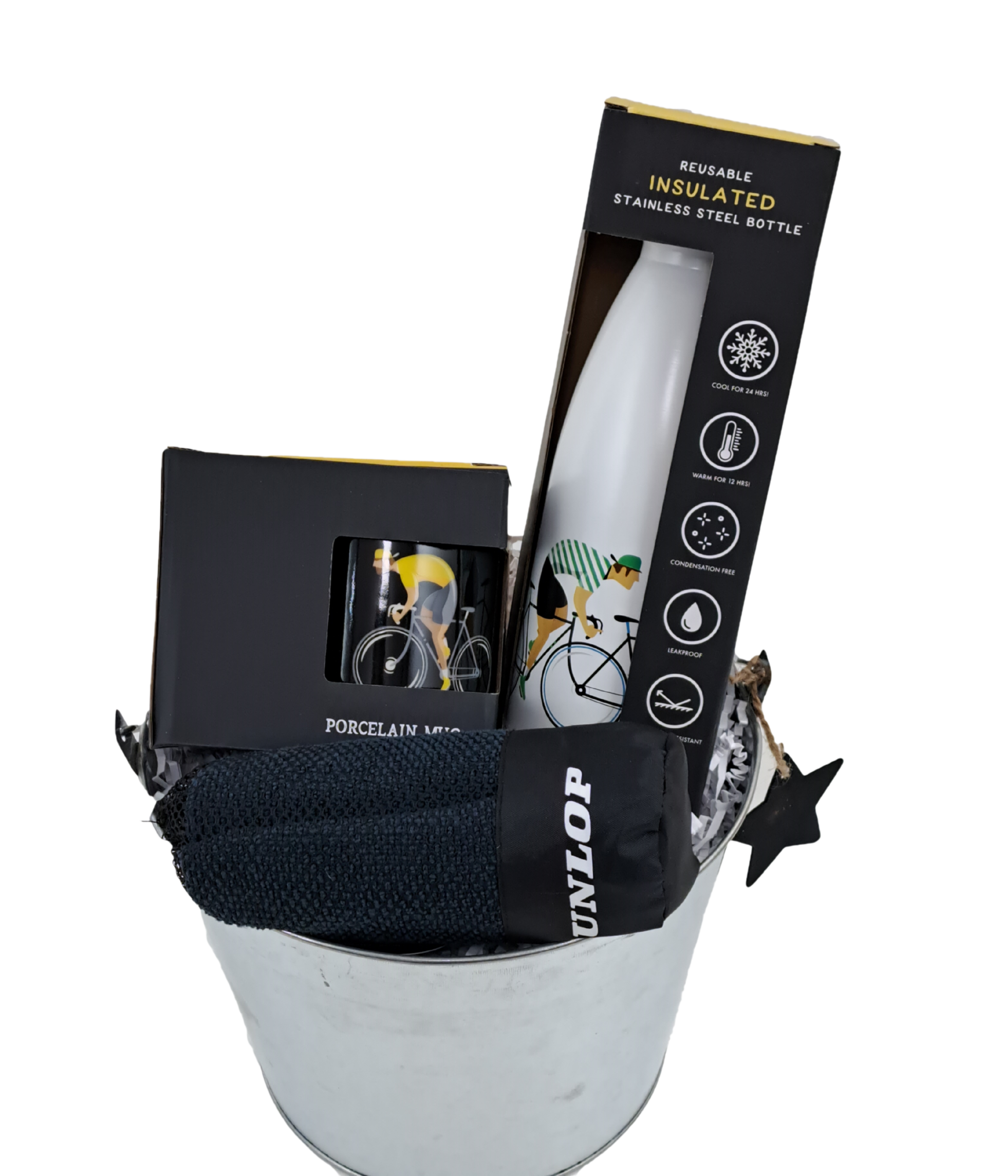 Speciaal voor wielrenliefhebbers en Tour de France-fans: deze Bucket in Wielren-stijl zit boordevol praktische en sportieve items. Perfect om cadeau te geven of zelf te gebruiken tijdens trainingen, races of ontspannende momenten.