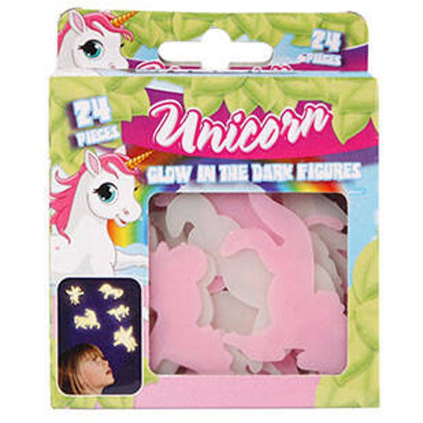 - Glow in the Dark Eenhoorns; Versier je bed, je nachtkastje of je muur of wat je ook kunt bedenken, met deze Glow in the Dark-plakkers. 24 stuks. Ze lichten op in het donker.