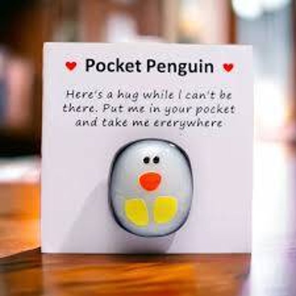 - Pocket Pinguïn; Deze bemoedigende wenskaart van 5x5cm stop je gemakkelijk in je zak of je portemonnee, zodat hij jouw 'hart onder de riem is' wanneer je dit nodig hebt. De pinguïn is ca. 2,5 cm.
